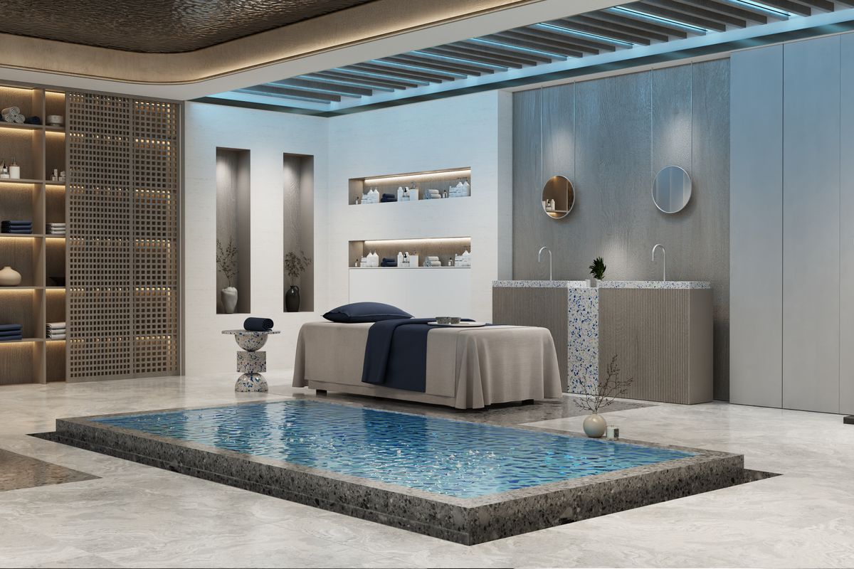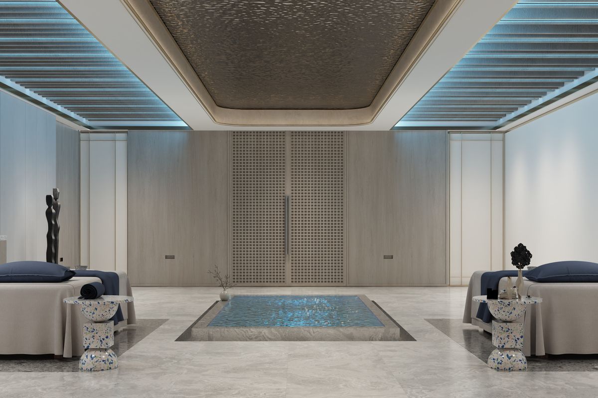 -Resort-Style Amenities; Infinity pool, fully equipped gym, spa, outdoor lounges, and lush green spaces.