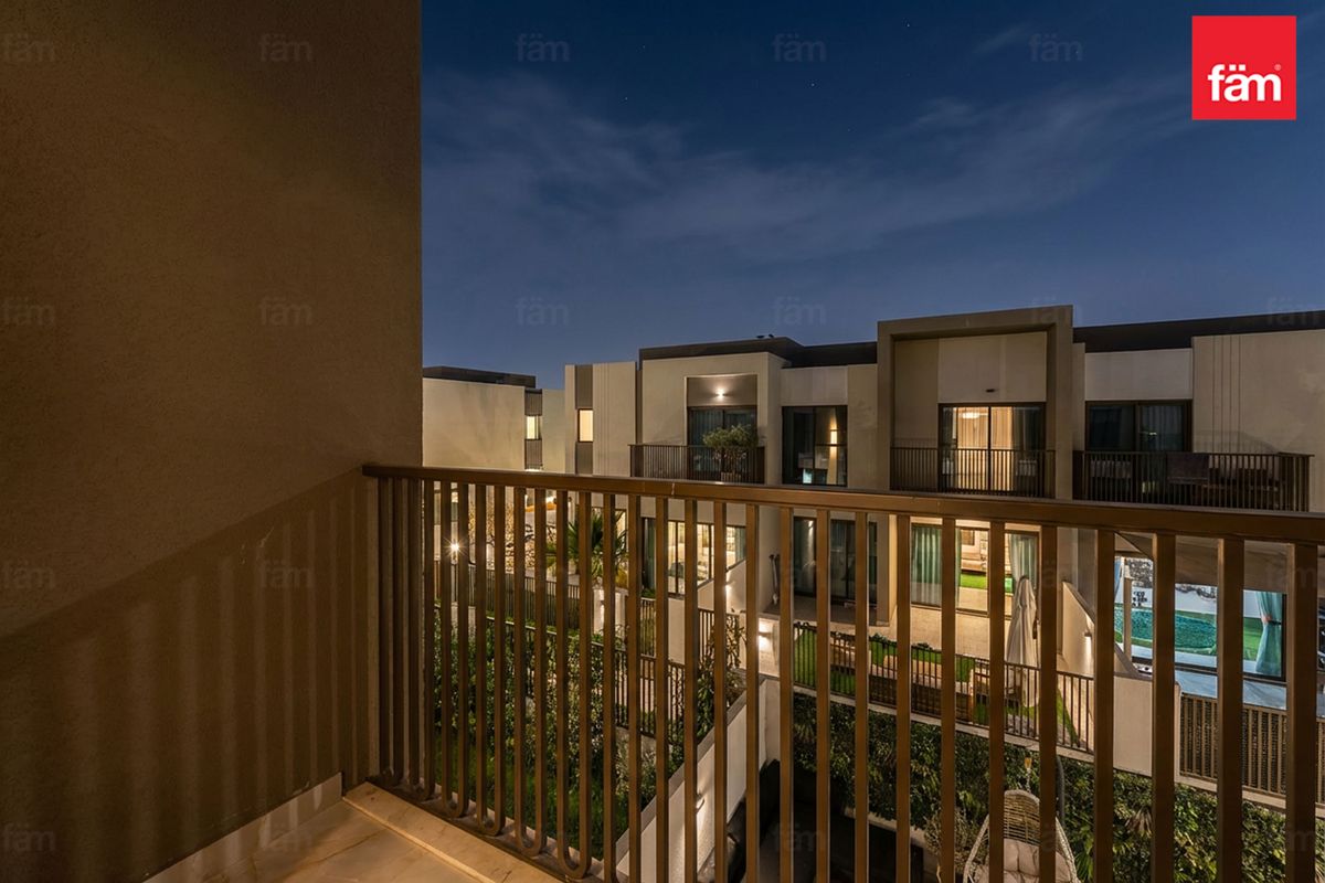 Boasting four lavish bathrooms and an airy layout, this unfurnished townhouse features expansive living spaces with a captivating community view that invites tranquility and exclusivity. Impeccably appointed with built-in wardrobes and a fully equipped kitchen featuring top-of-the-line appliances, every detail reflects refined living.